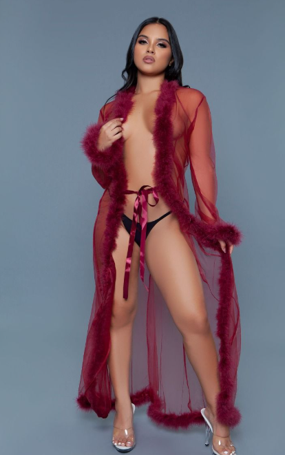 Be Wicked Long Length Marabou Glamour Robe BW1650 - Maroon