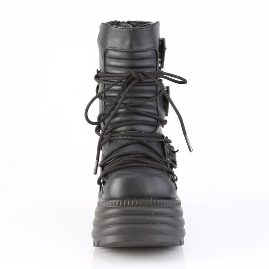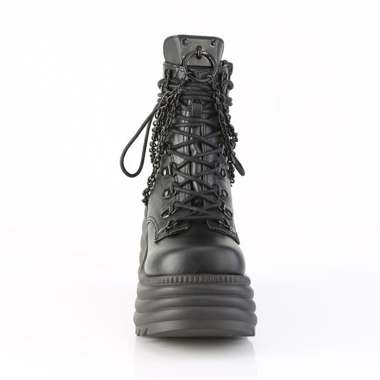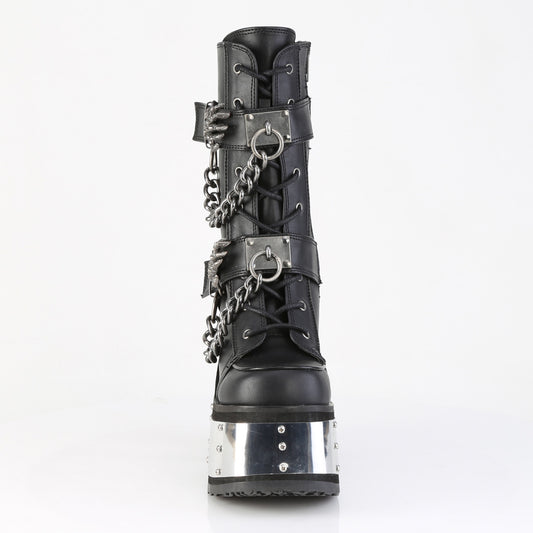MUERTO-1030 Black Faux Leather/Pewter Chrome