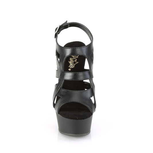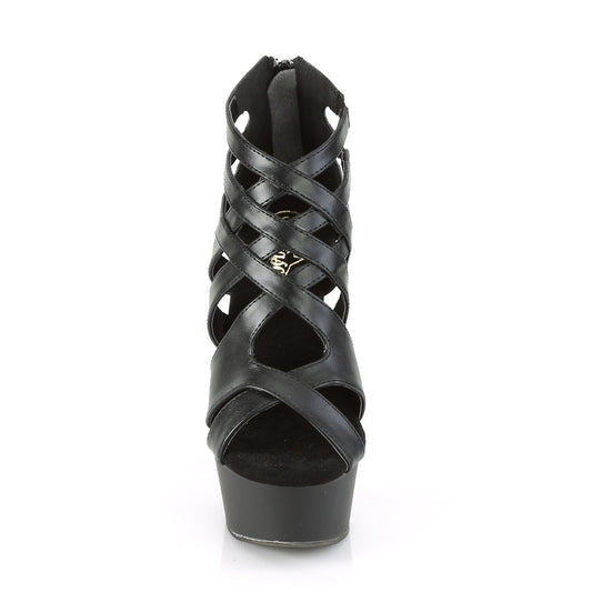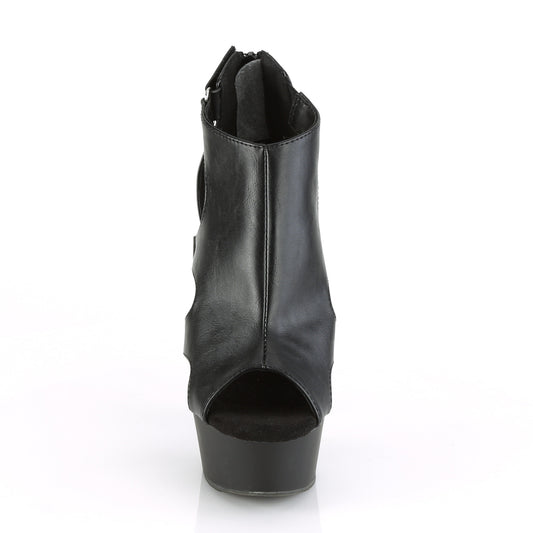 DELIGHT-658 Black Faux Leather/Rose Gold Chrome