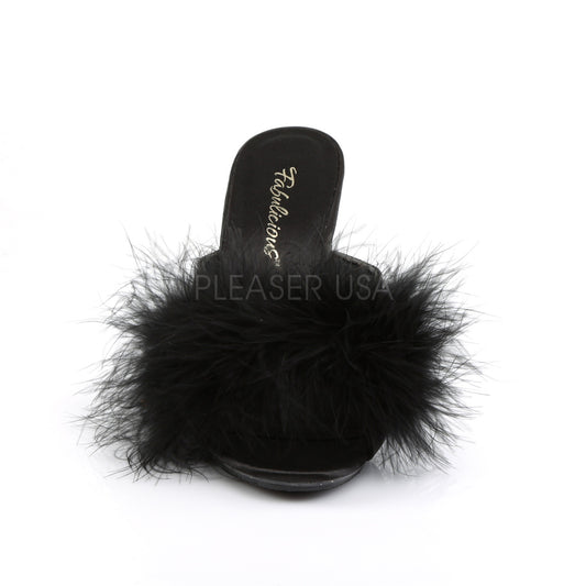 Sold outCARESS-401F Black Satin-Fur/Clear