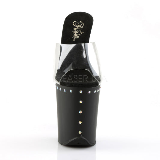 FLAMINGO-800-34FS Clear-Black Faux Suede/Black Faux Suede