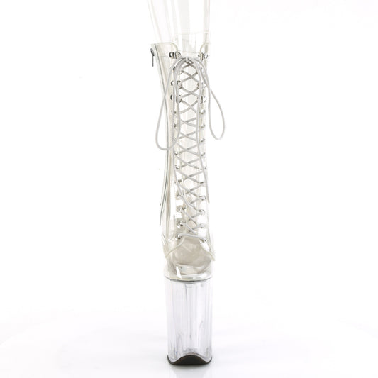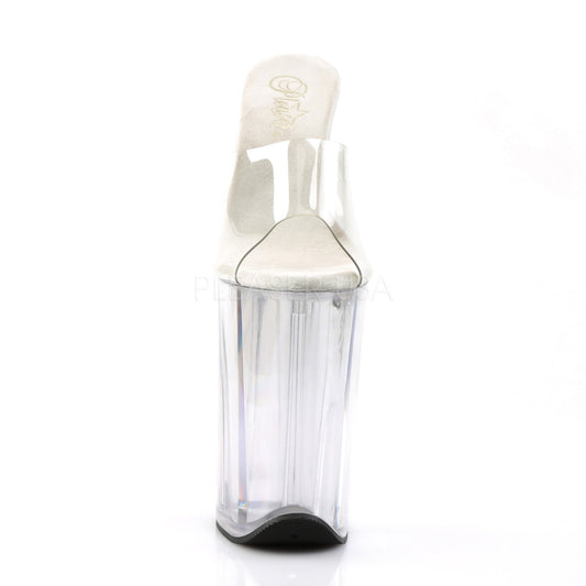 GLORY-501F-8 White Faux Leather-Fur/Clear