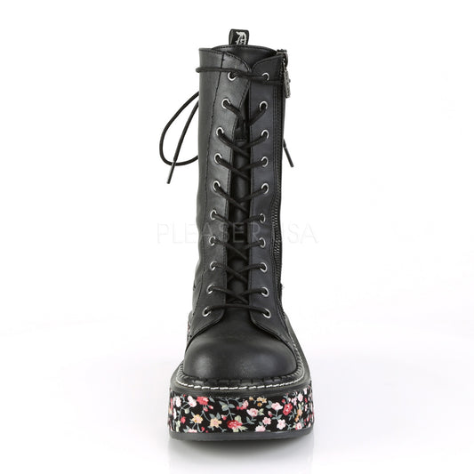 EMILY-350 Black Vegan Leather-Floral Fabric