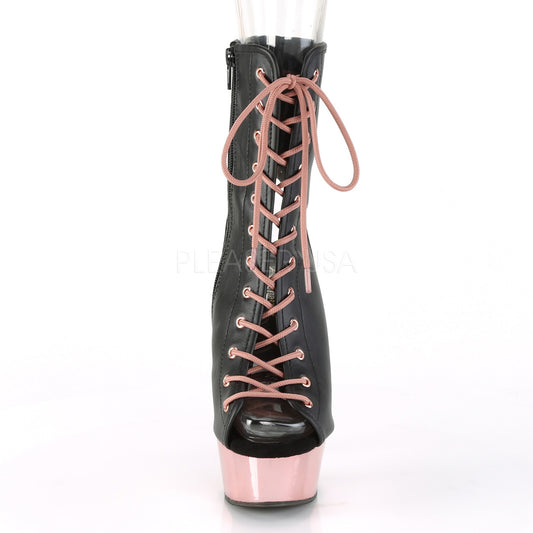 DELIGHT-1018 Black Faux Leather/Rose Gold Chrome
