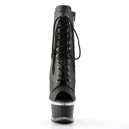 GLORY-501F-8 Black Faux Leather-Fur/Clear