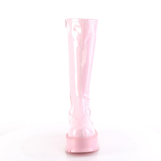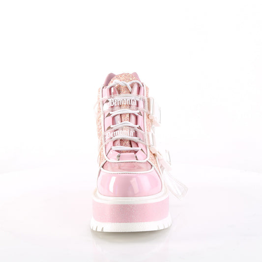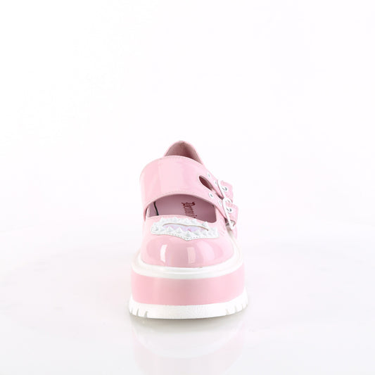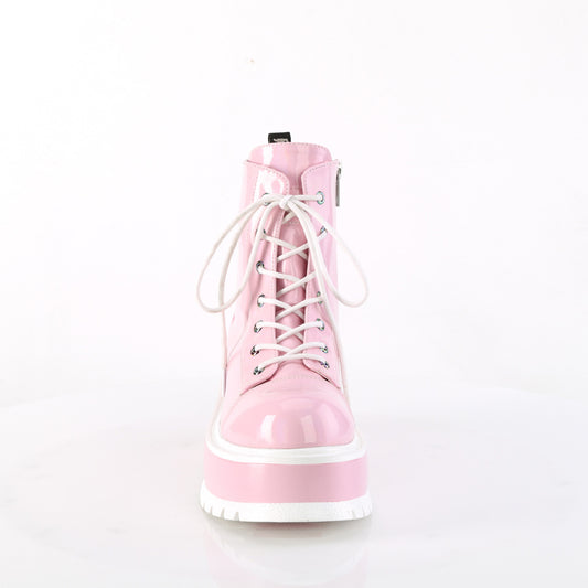 SLACKER-23 Baby Pink Holo Patent-White Vegan Leather