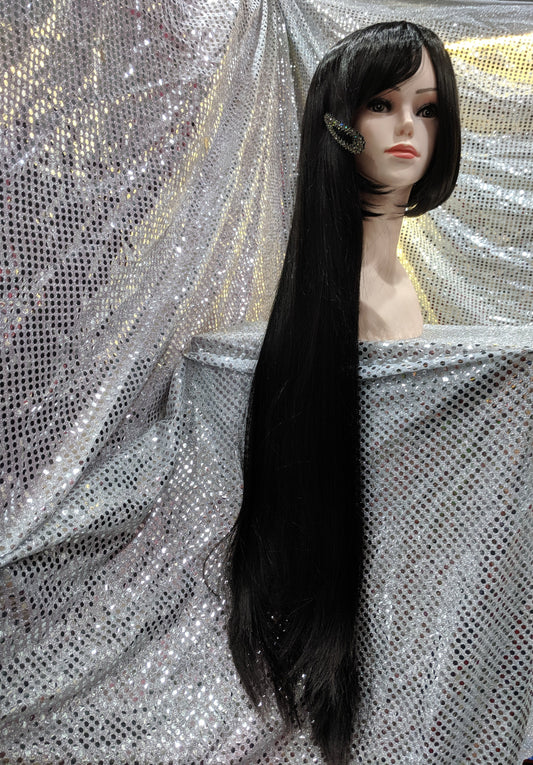 Jet Black 40" Straight Heat Resistant Wig With Bangs