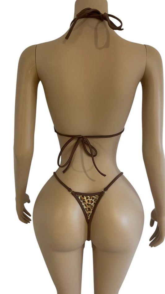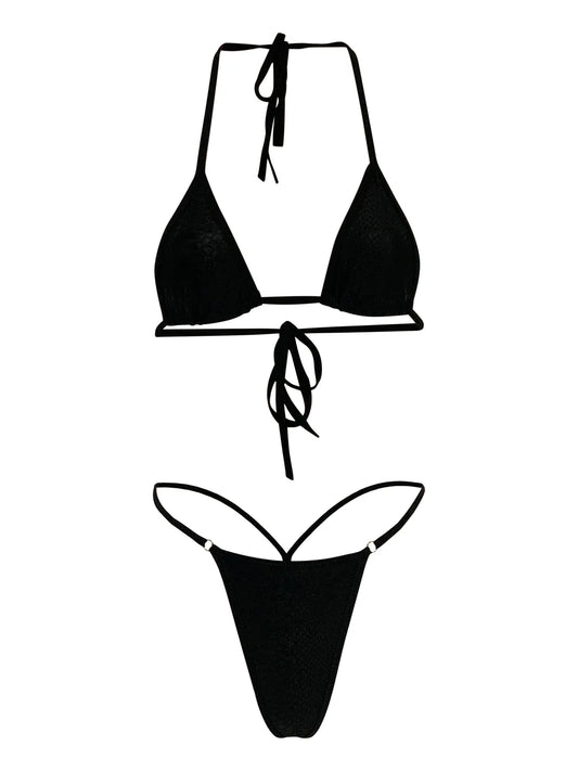 Heartbreaker Two-Piece Fishnet Rhinestone Bikini Set - Black