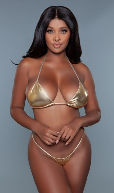 Heartbreaker Two-Piece Fishnet Rhinestone Bikini Set - Yellow