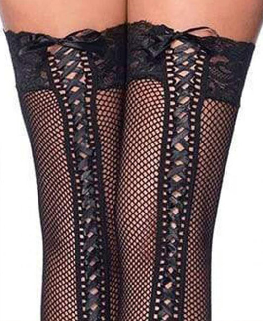 Leg Avenue Seamless Opaque Crochet Faux Lace Up Stockings 7925