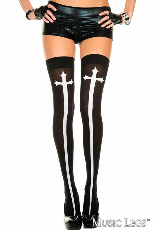 Gothic Cross Thigh High Opaque Stockings ML4629