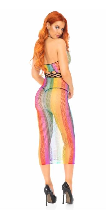 Leg Avenue Rainbow Net Long Halter Dress 88021