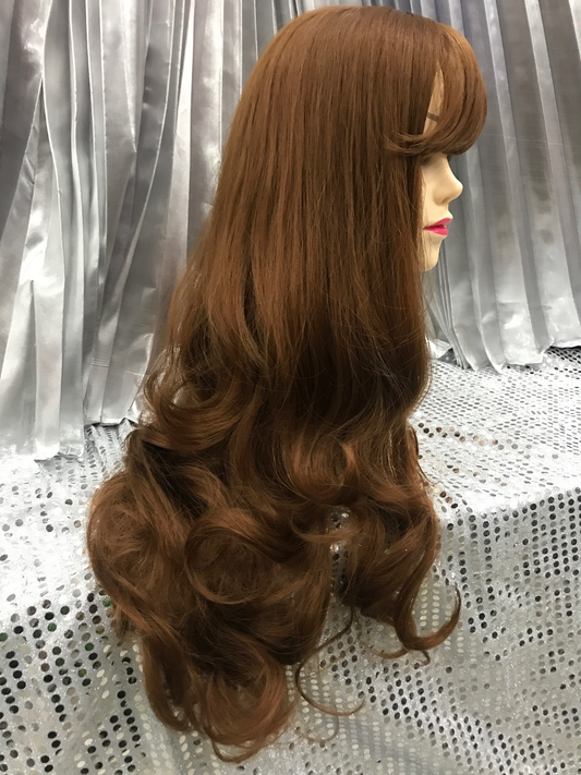 Auburn Brown 26" Synthetic Wavy Wig With Soft Fringe