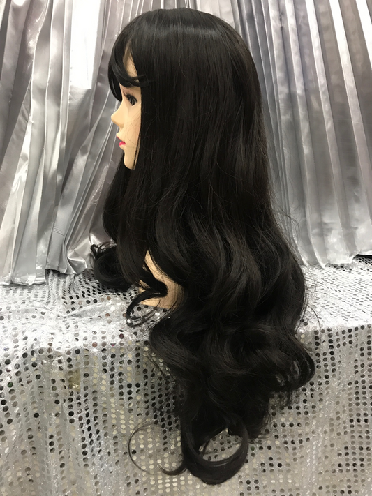 Black 26" Synthetic Wavy Wig With Soft Fringe