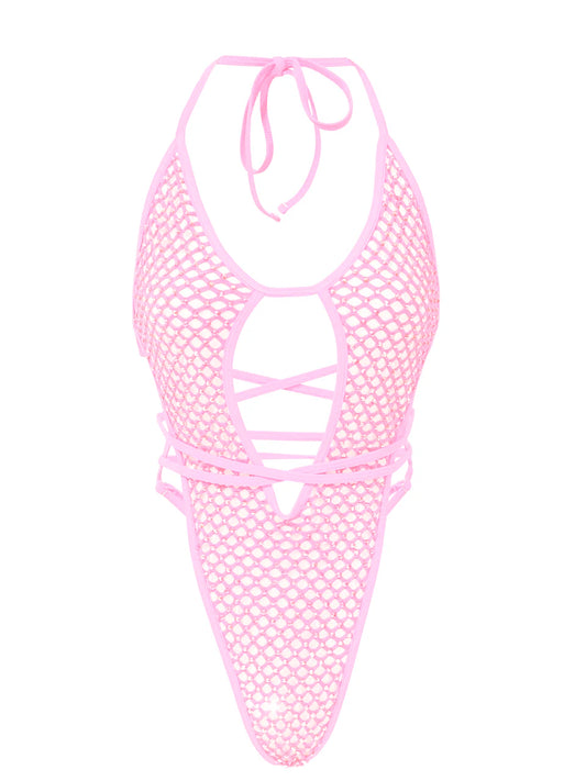 2PC Reflective Strappy Short Set With Attached Garters - 6657