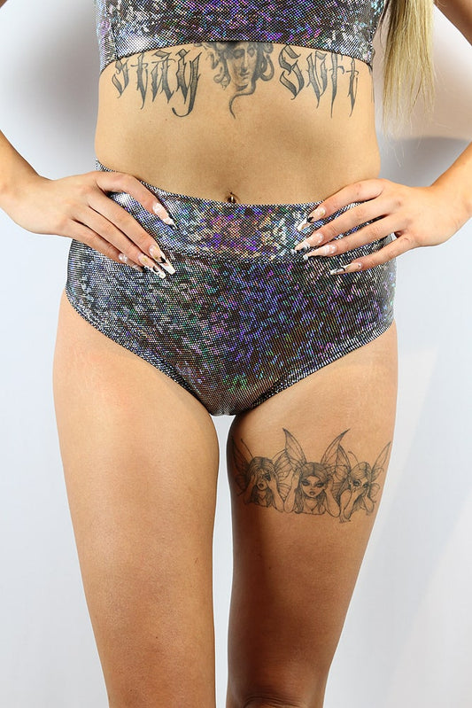 Rarr Mid Waisted Brazil Scrunch Bum Shorts - Silver Shattered