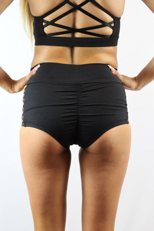 Rarr Matte Black Criss Cross Mid Waist Booty Short