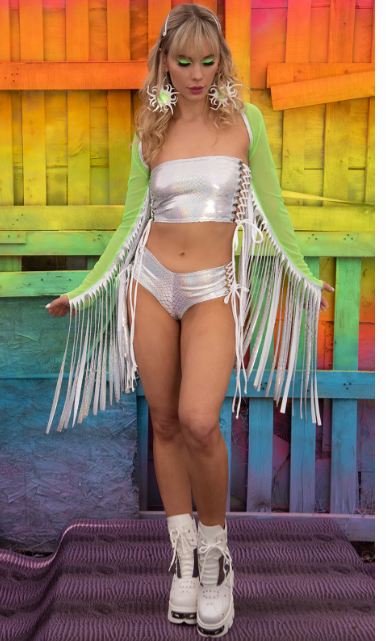 Metallic Lace-Up Shorts - Lime FE223