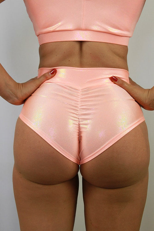 Rarr Mid Waisted Brazil Scrunchie Bum Shorts - Peach Sparkle