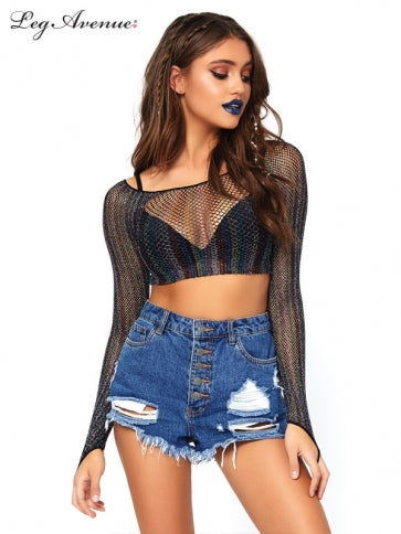 Leg Avenue Fishnet Rainbow Lurex Glitter Striped Crop Top 81568