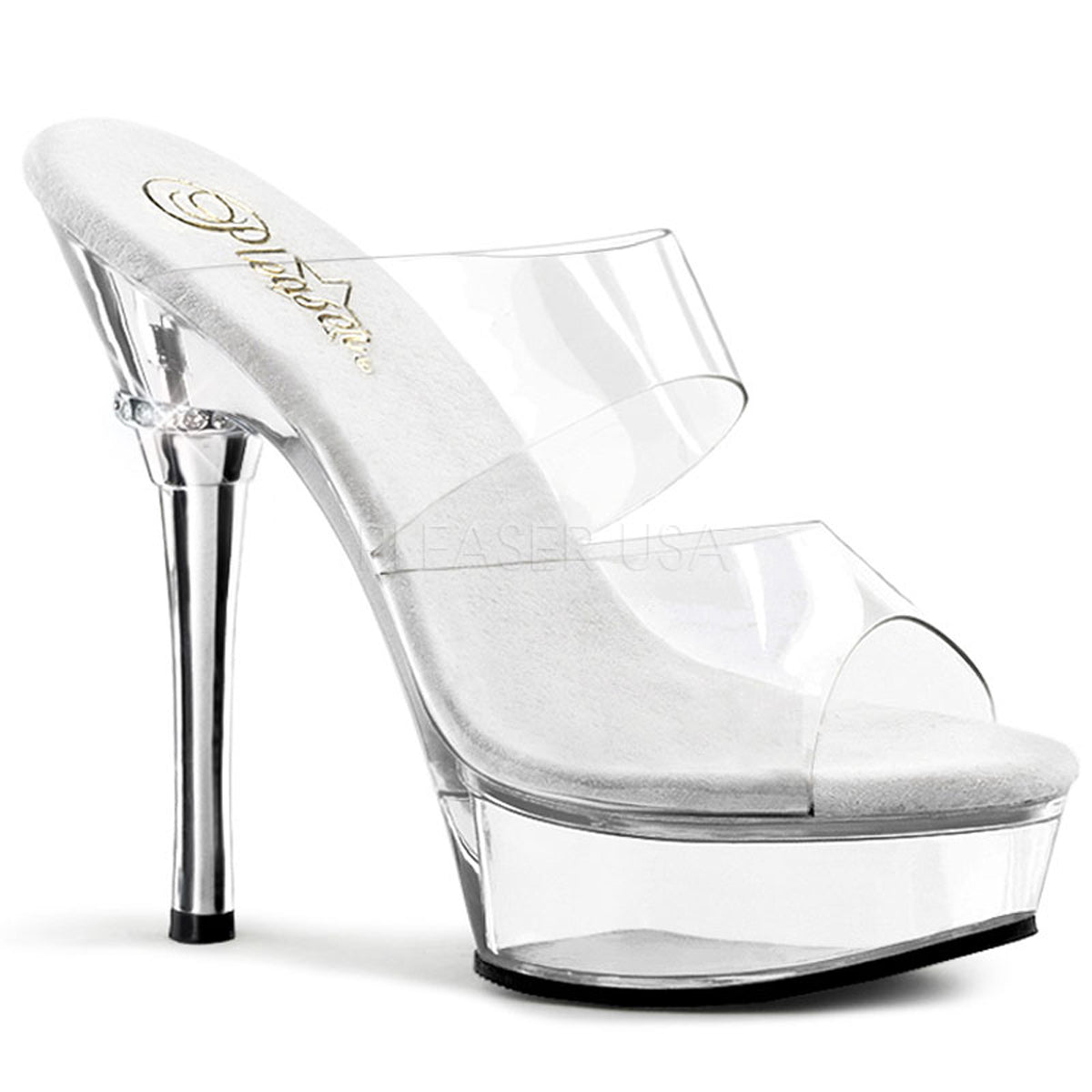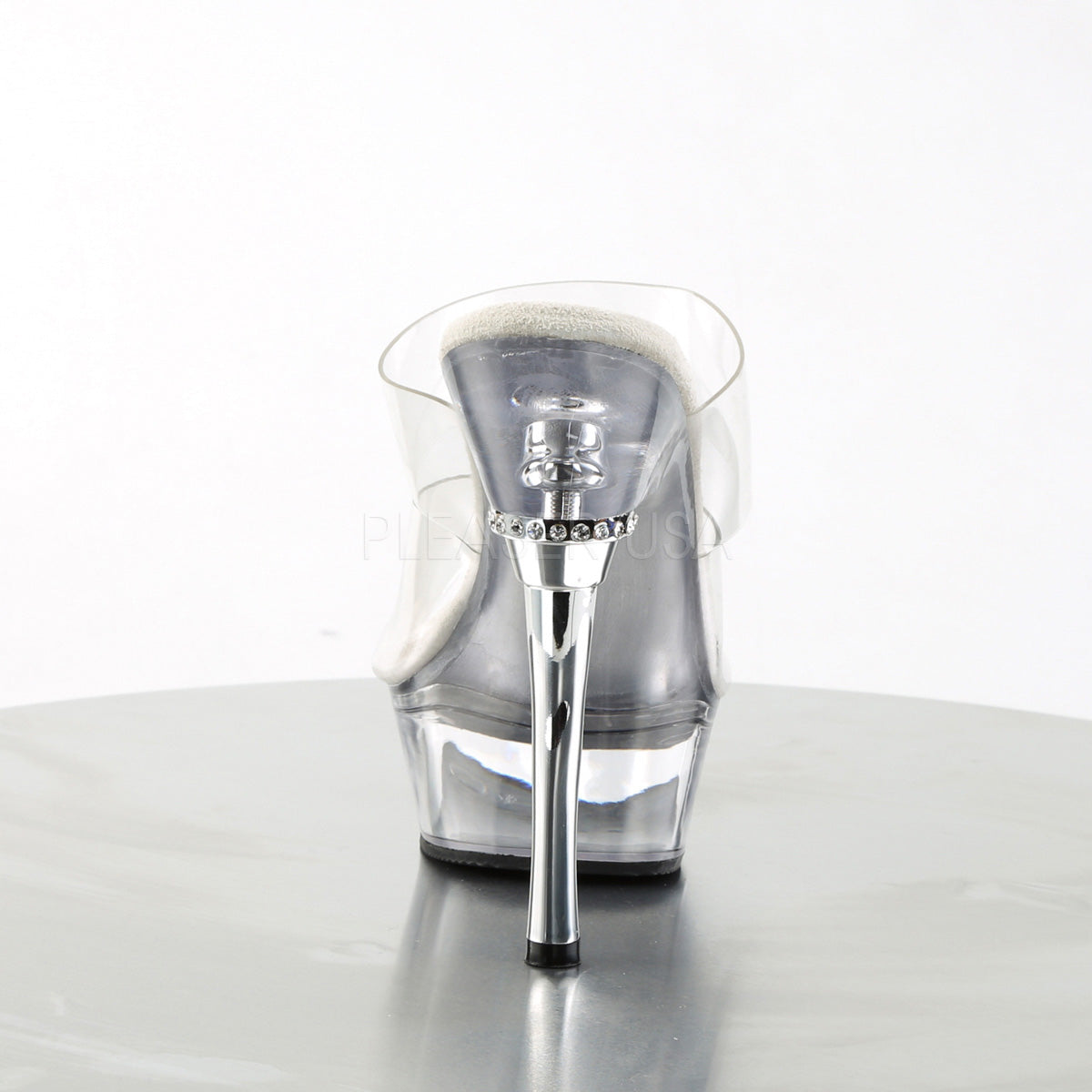 **5 1/2" Heel 1 1/2" Platform Chrome Heel Sandal