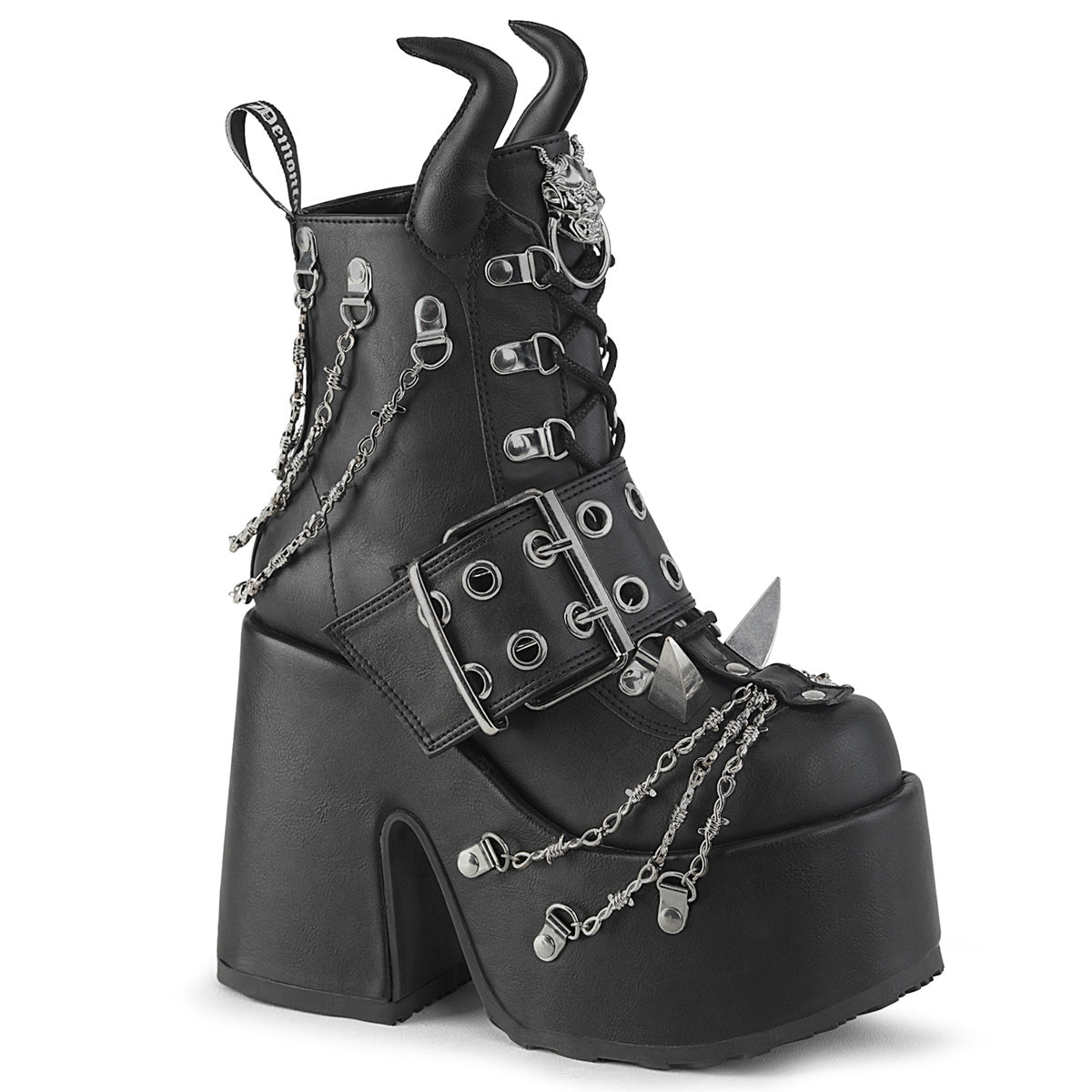 Full Description: 5" Chunky Heel, 3" PF, D-Ring Lace-Up Ankle Boot, Side Zip
