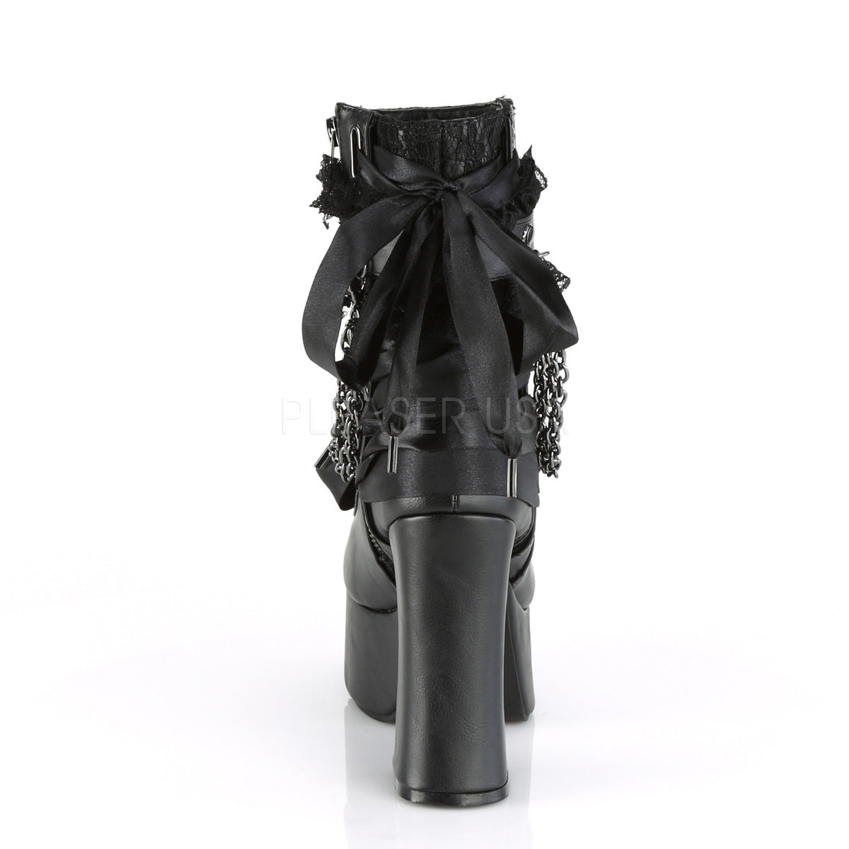 CHARADE-110 Black Vegan Leather-Lace Overlay
