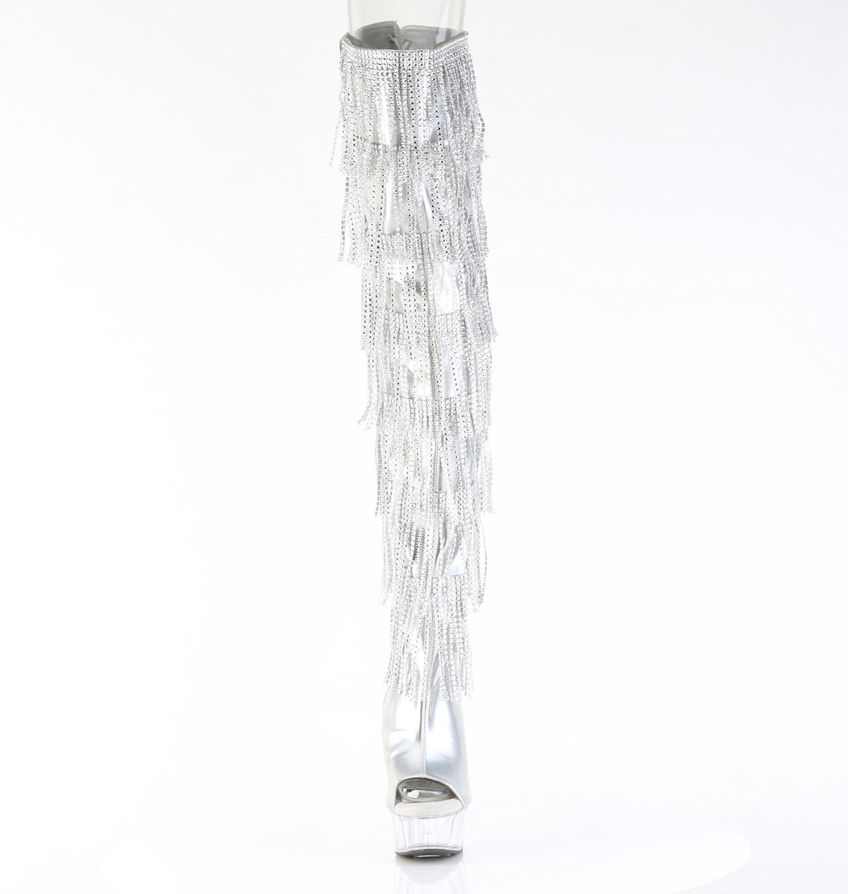 Full Description: 6" Heel, 1 3/4" PF 7-Layer Fringe Lace-Up Back Thigh Boot