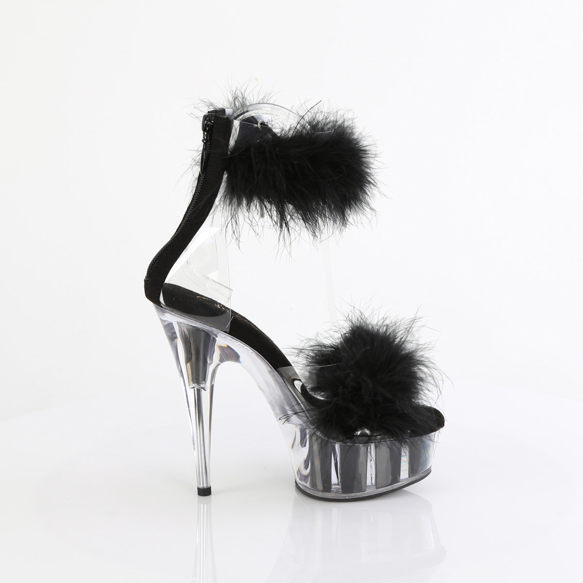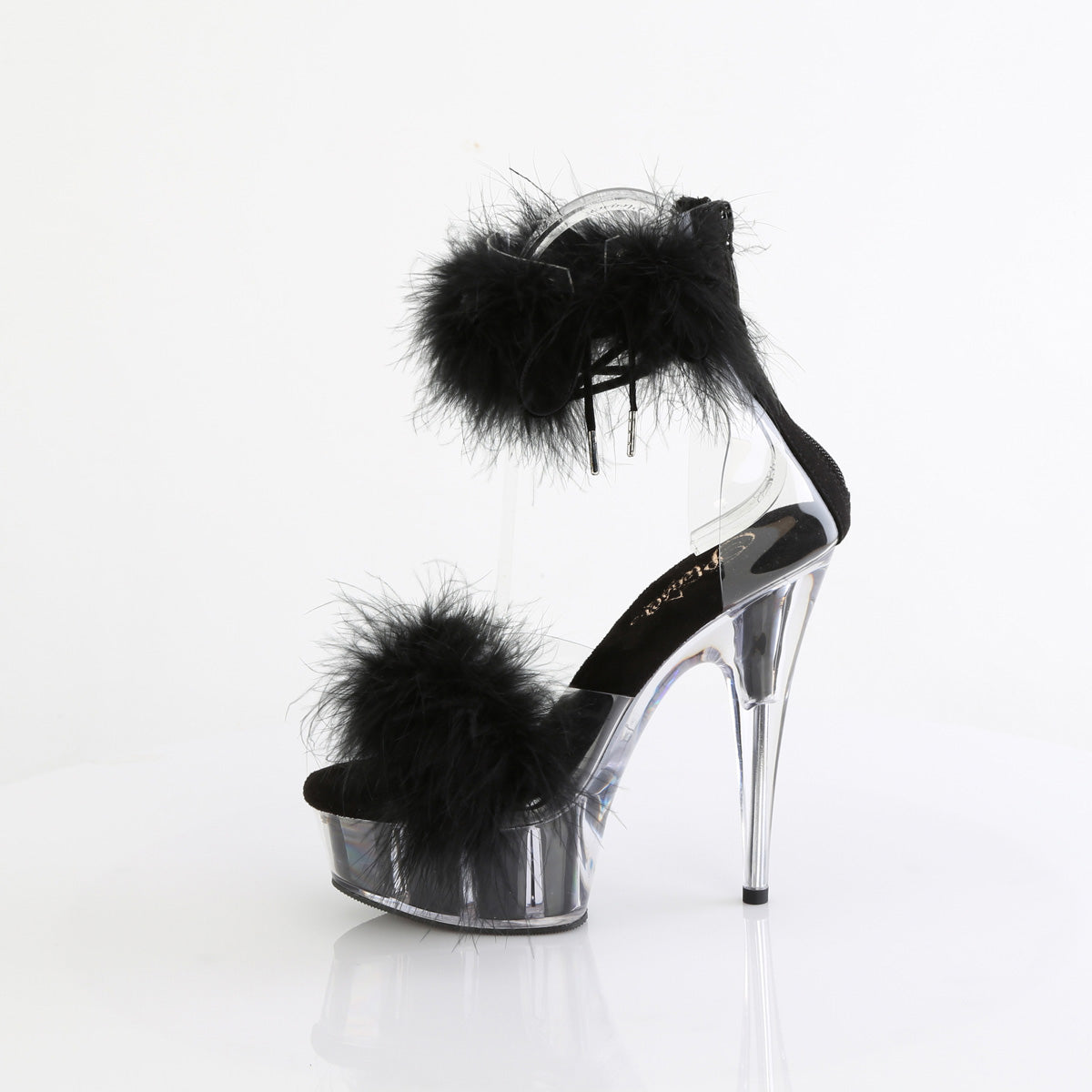 Full Description: 6" Heel, 1 3/4" PF Marabou Fur Ankle Cuff Sandal, Back Zip
