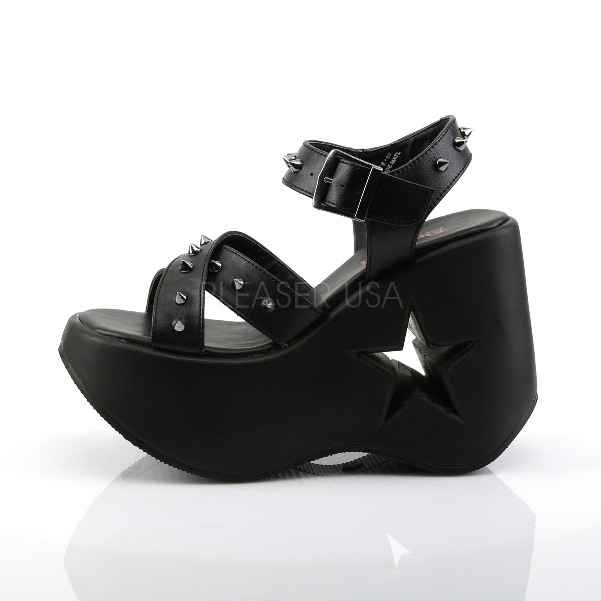 Full Description: 5" Star Cutout Platform Wedge Ankle Strap Sandal