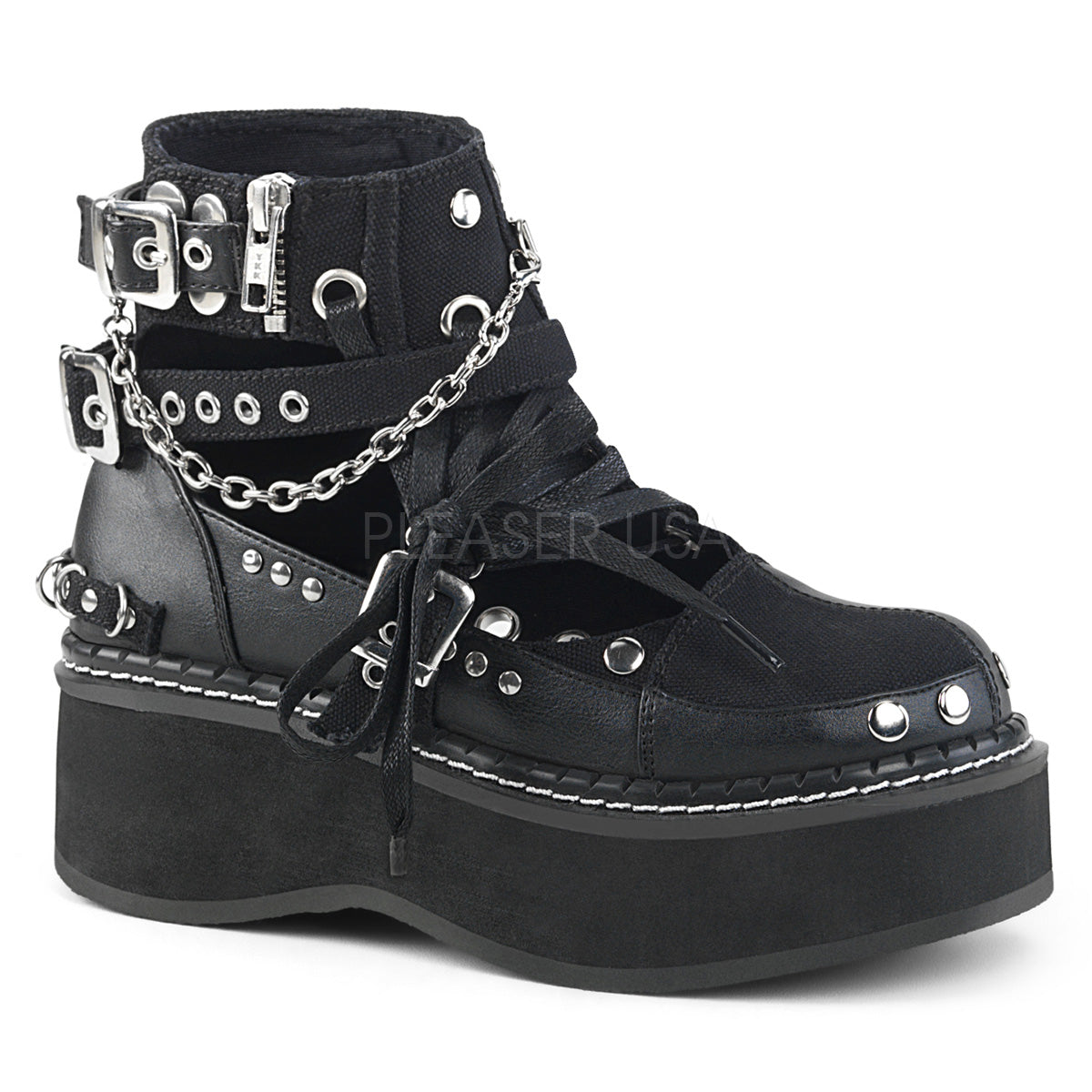 EMILY-317 Black Canvas-Vegan Leather