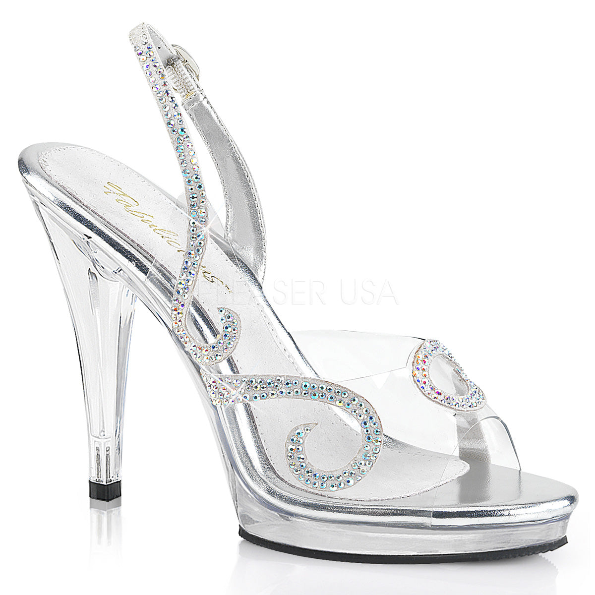 Full Description: 4 1/2" Heel, 1/2" PF Slingback Sandal w/ AB RS/Gray