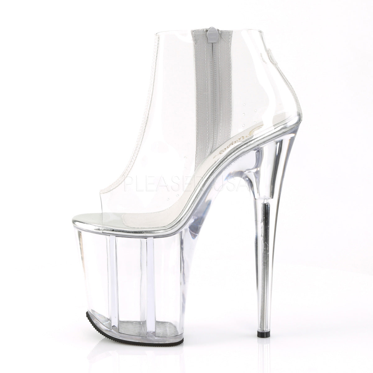Full Description: 8" Heel, 4" Open Toe Ankle Boot, Side Zip