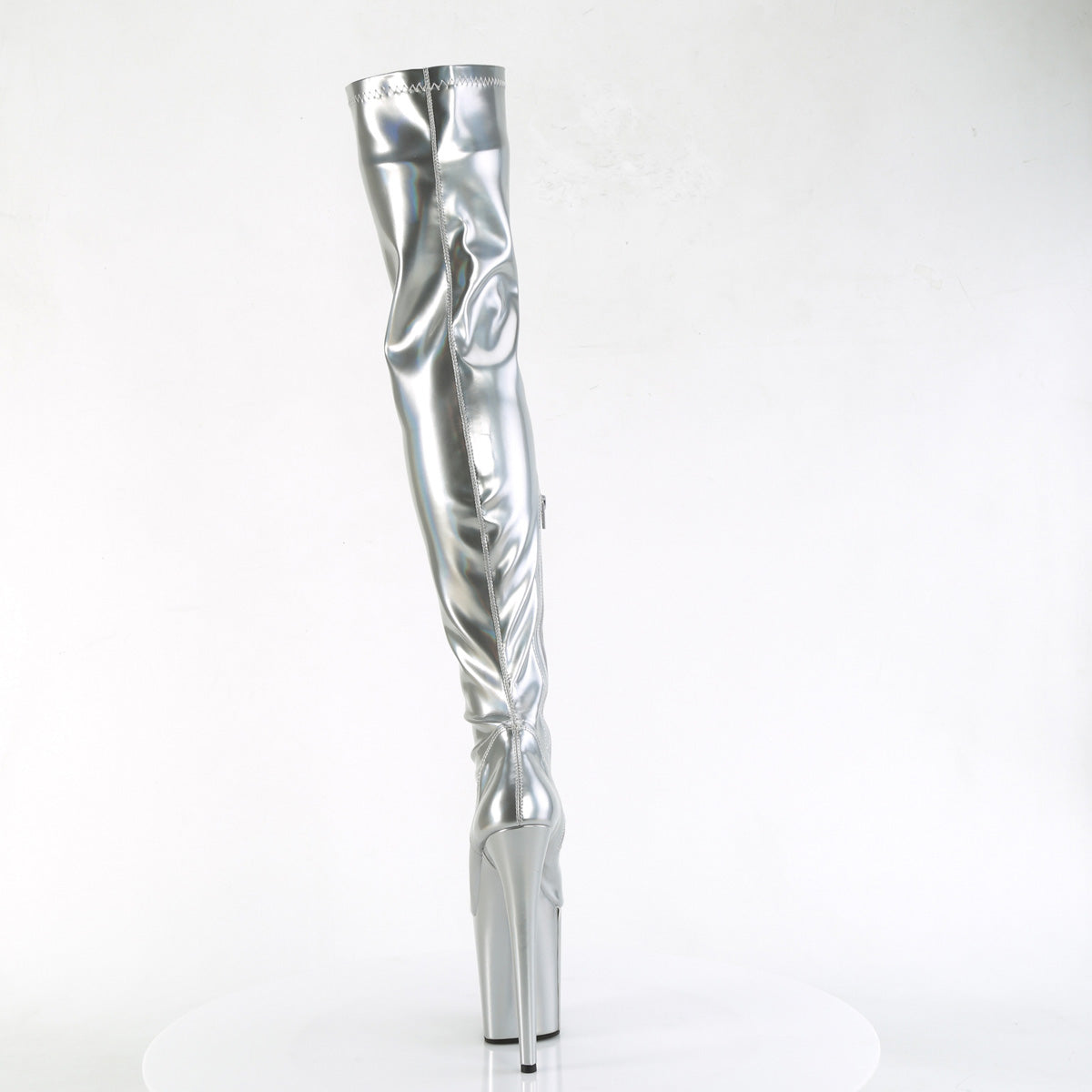 Full Description: 8" Heel, 4" PF Stretch Thigh Boot, Side Zip