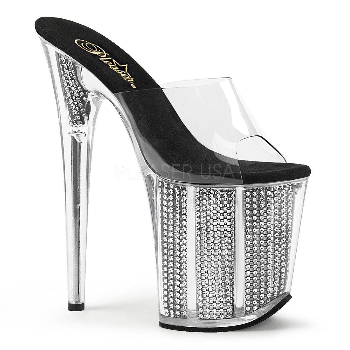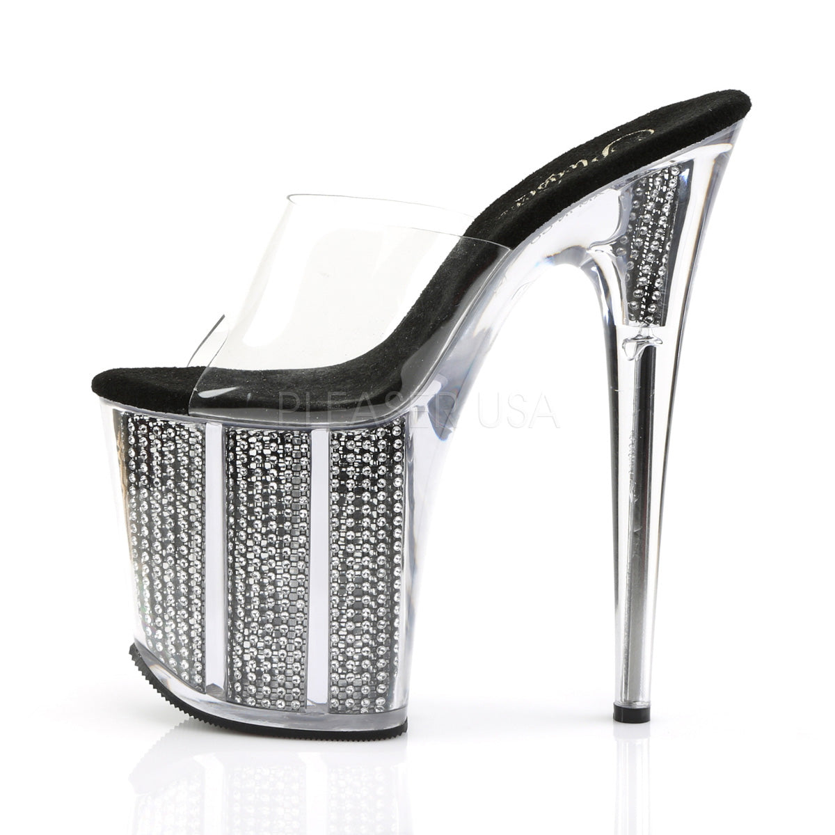 Full Description: 8" Heel, 4" PF Slide W/Simulated RS Filled Bottom