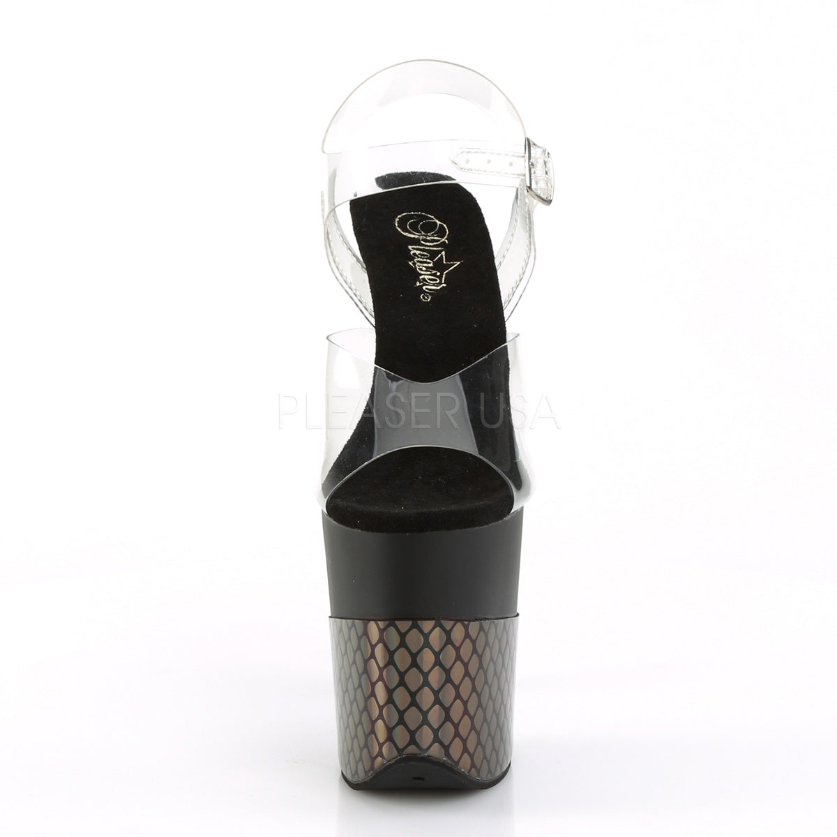 Full Description: 8" Heel, 4" PF Ankle Strap Sandal w/ Fish Skin Design