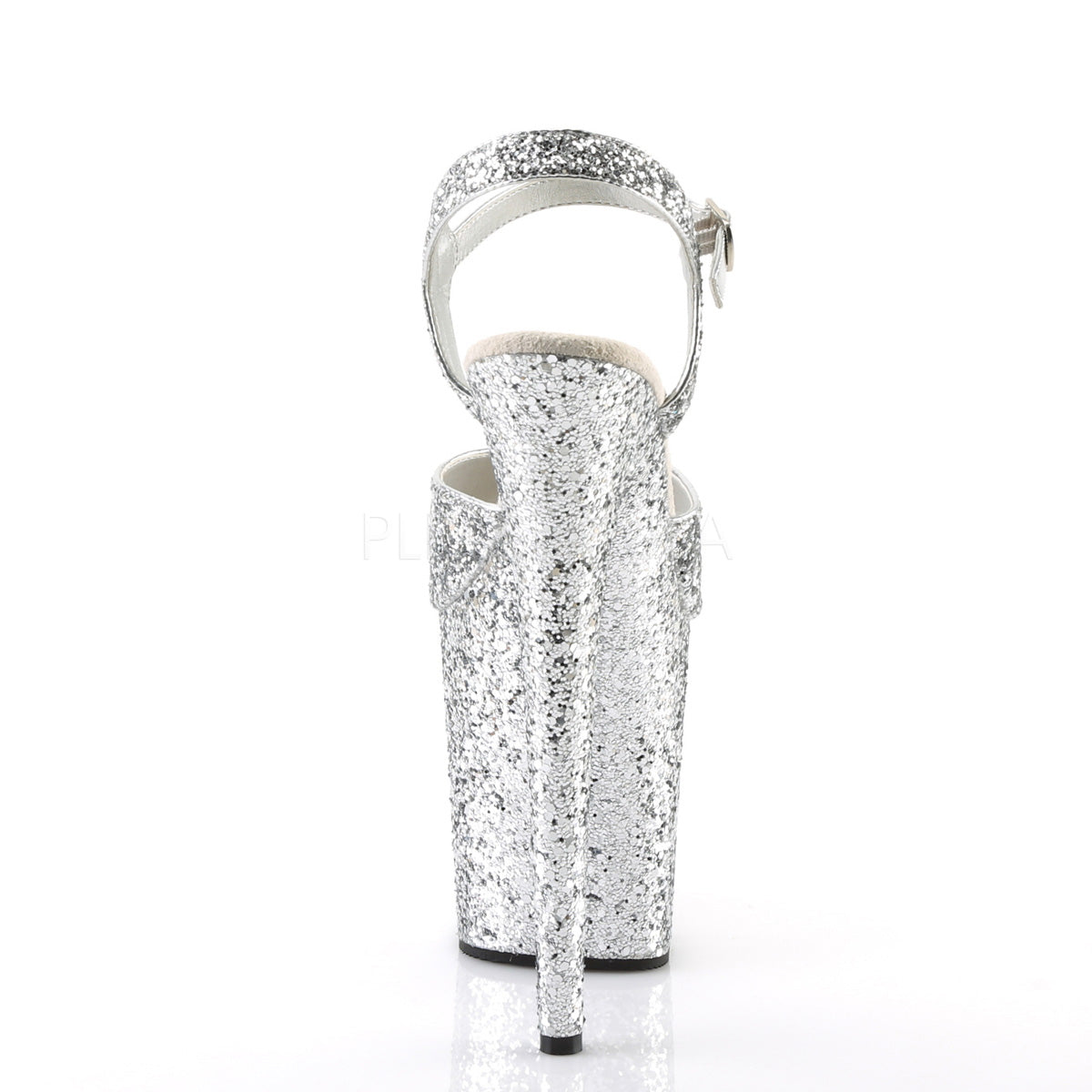 Full Description: 8" Heel, 4" PF Glitter Ankle Strap Sandal