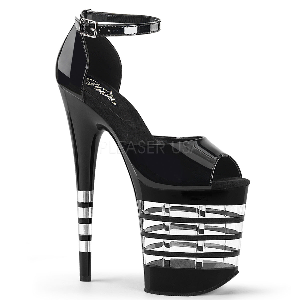 Full Description: 8" Heel, 4" Lined PF Ankle Strap Close Back Sandal