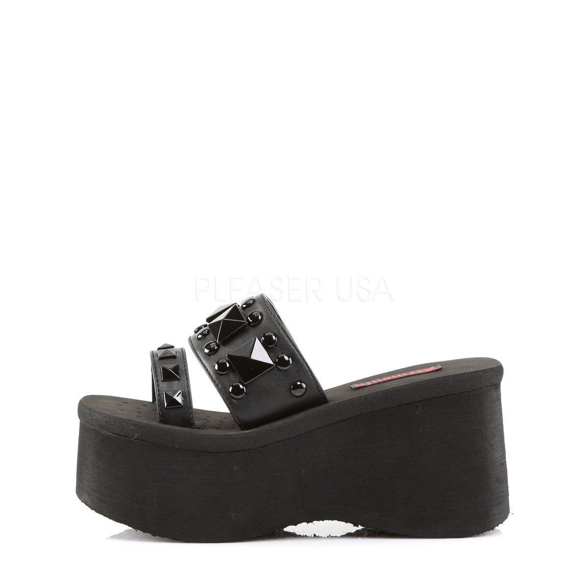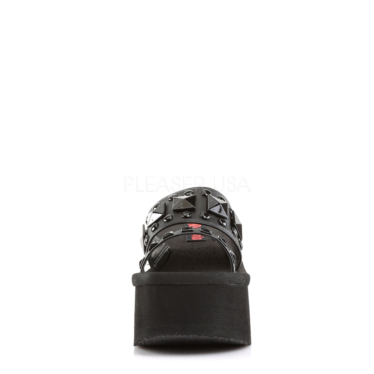 Full Description: 3 1/2" EVA PF, Two Band Slide w/Metal Pyramids & Studs