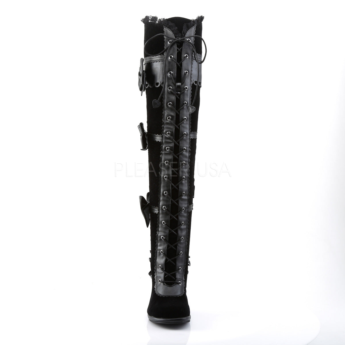 Full Description: 3 3/4" Heel, 1/2" PF Goth Lolita Over-the-Knee Boot w/ Bows