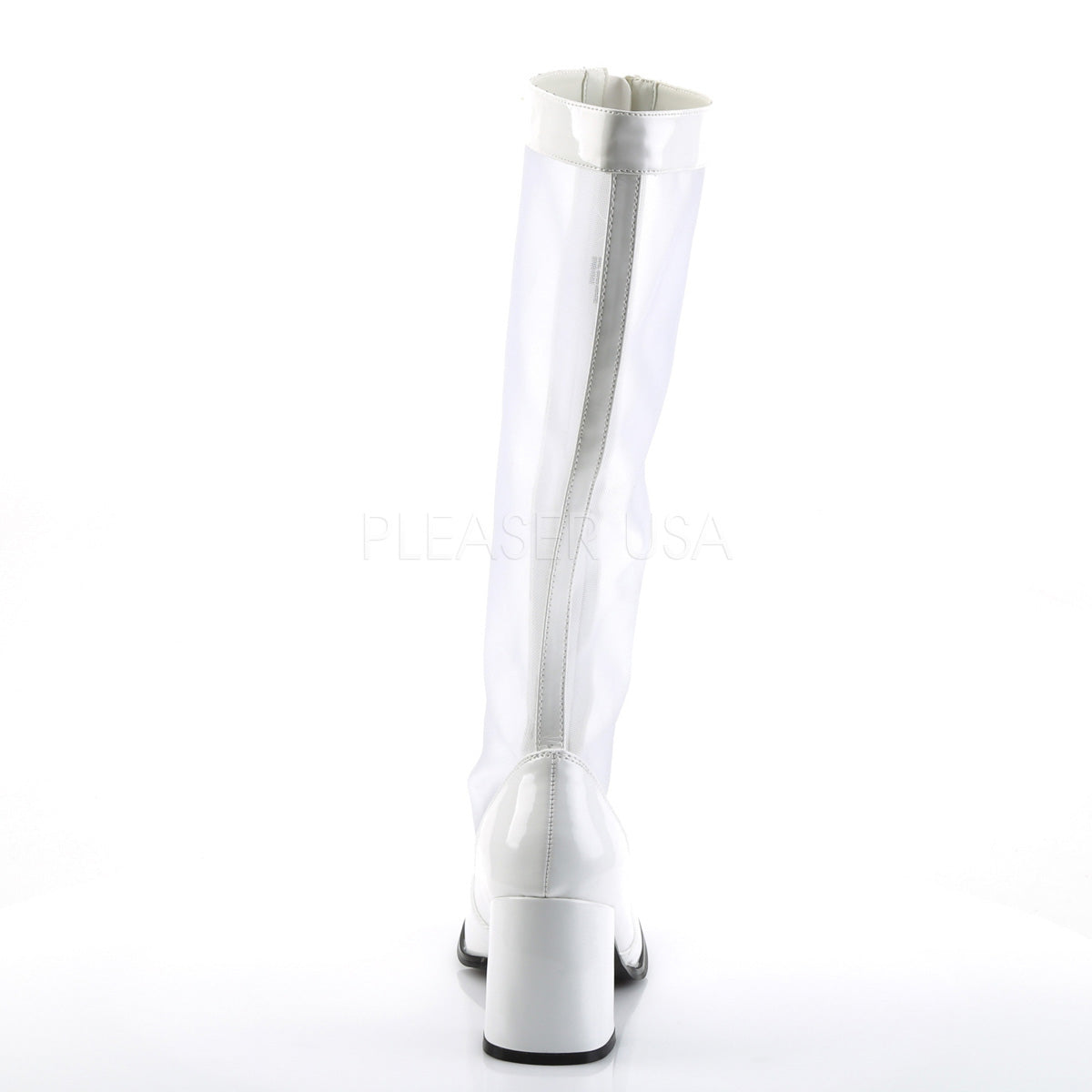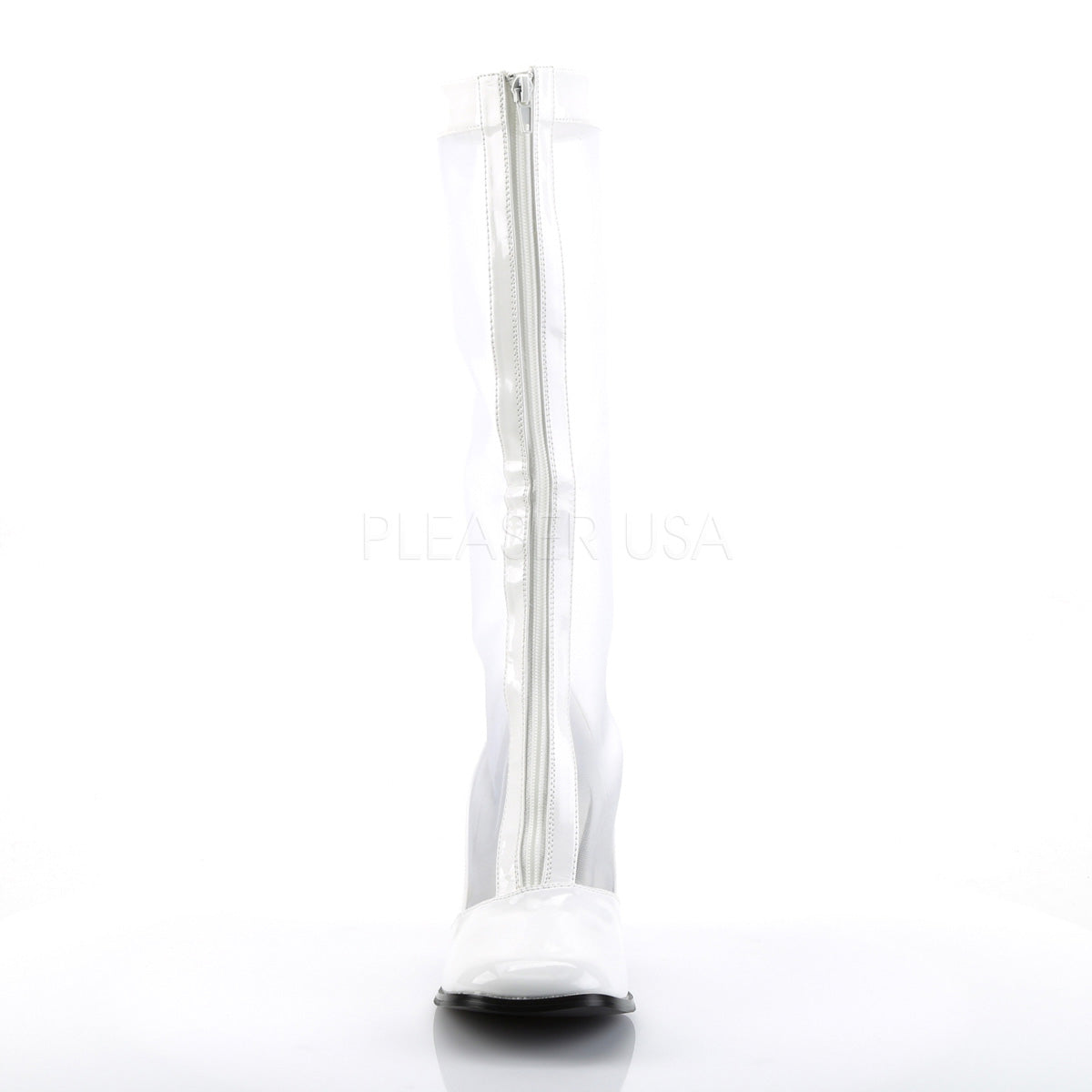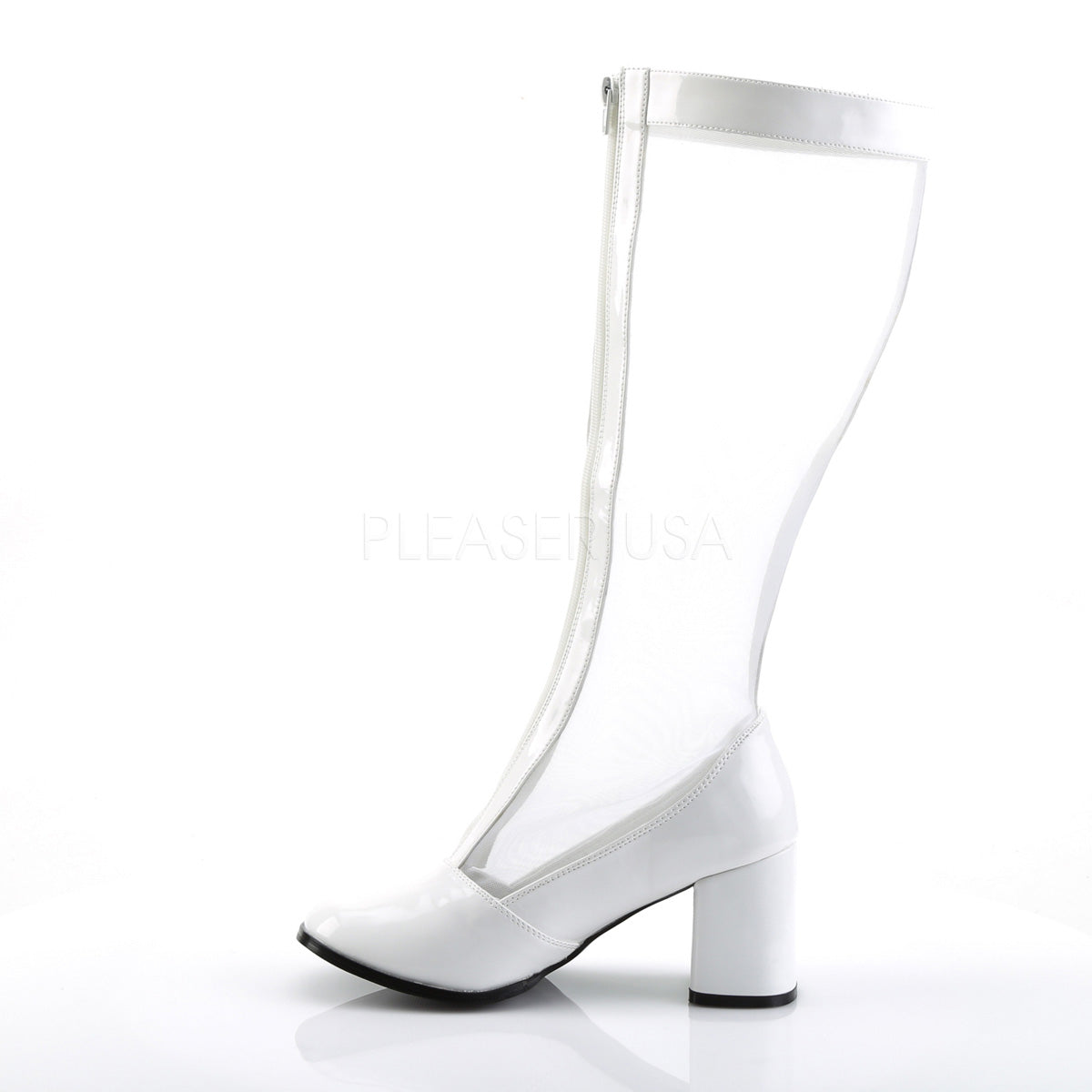 Full Description: **3" Block Heel, Gogo Mesh Boot, Str. Pat, Front Zip