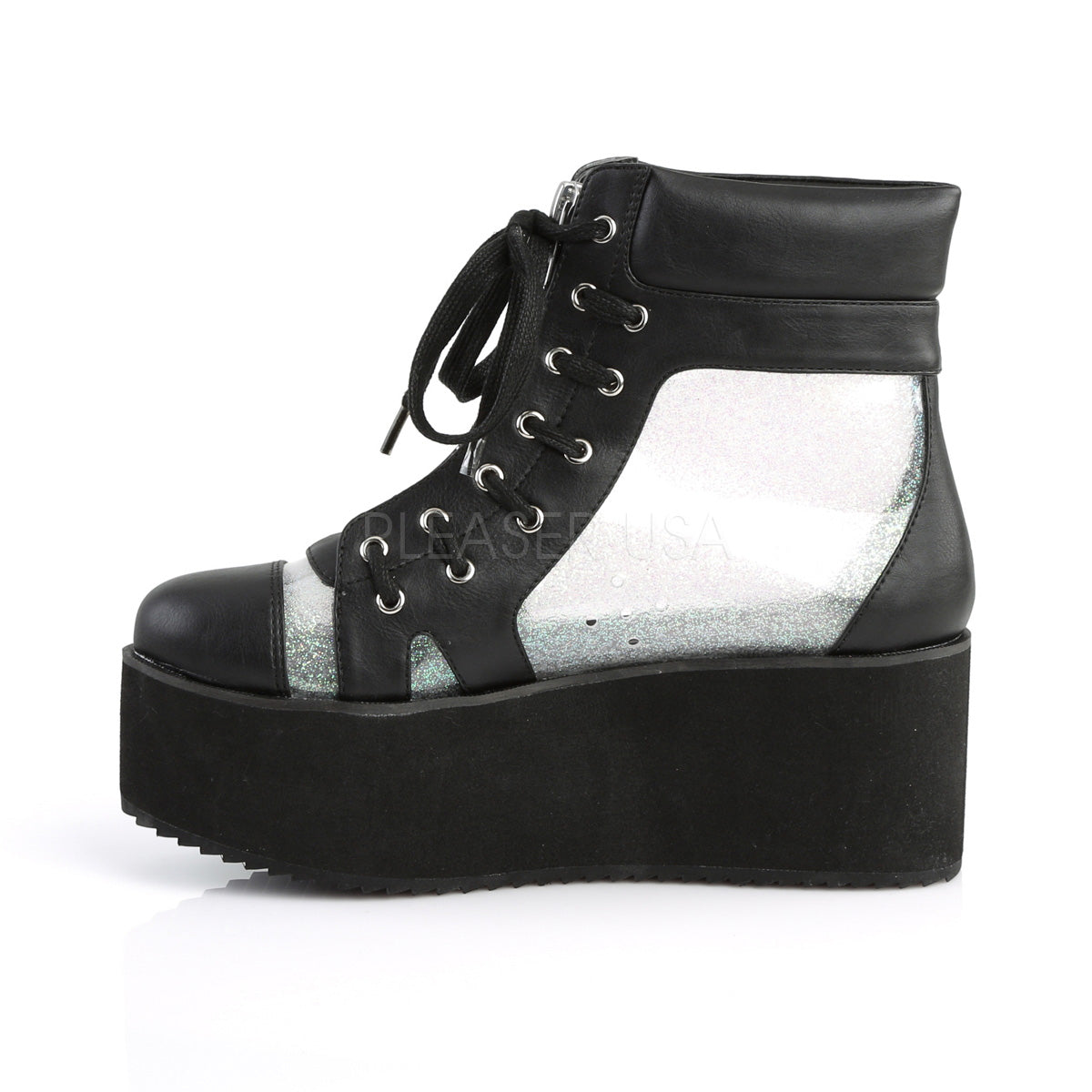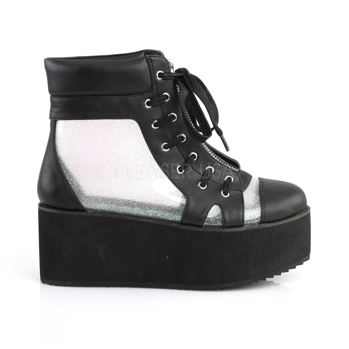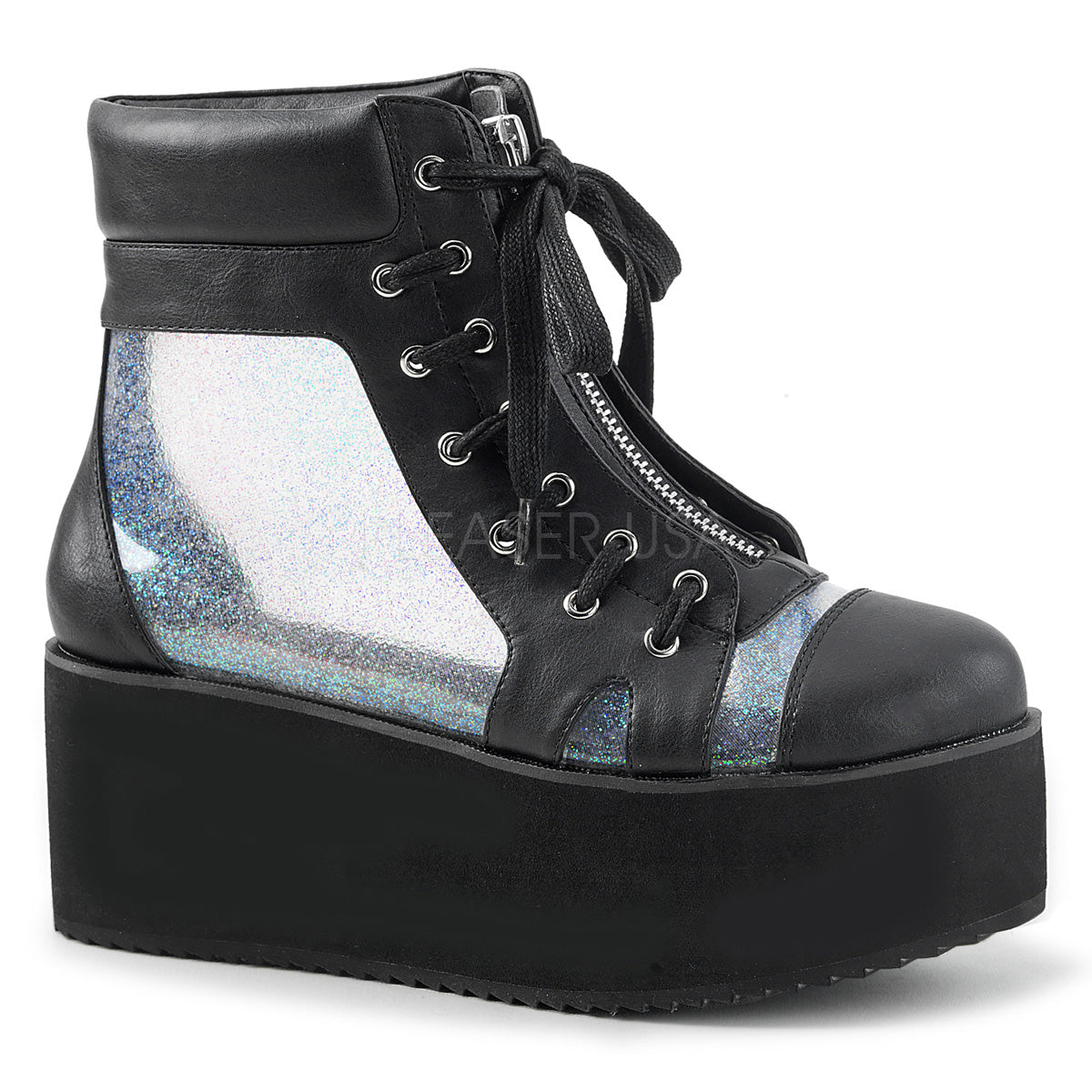 - Colour Description: Blk Vegan Leather-Clr Hologram TPU