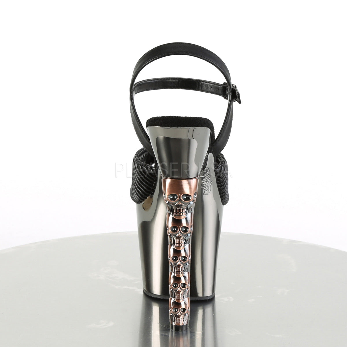 Full Description: 7" Skull Stacked Heel, 3 1/4" PF Ankle Strap Sandal