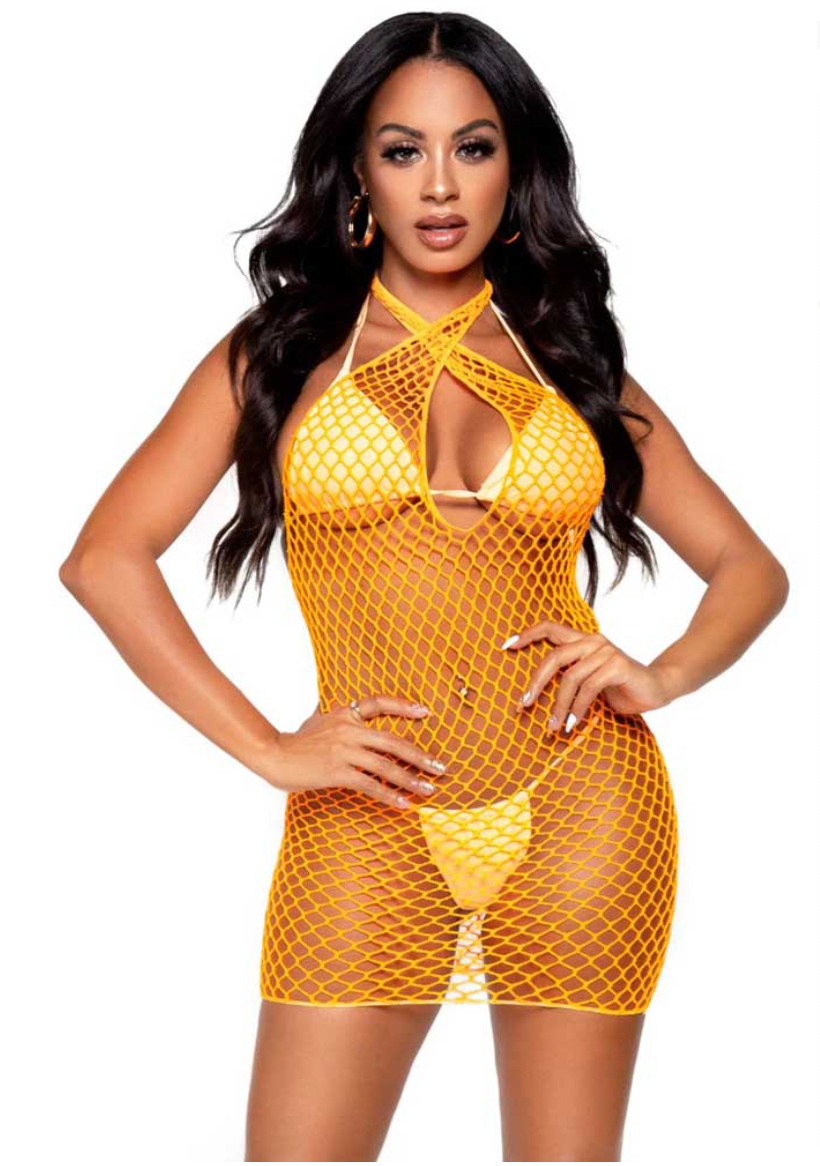 Leg Avenue Diamond Net Twist Halter Mini Dress 86130