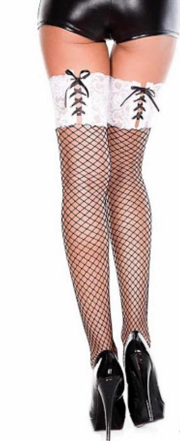 Music Legs Silicone Lace Top Spandex Mini Diamond Net Thigh High with Ribbon Lacing ML4965