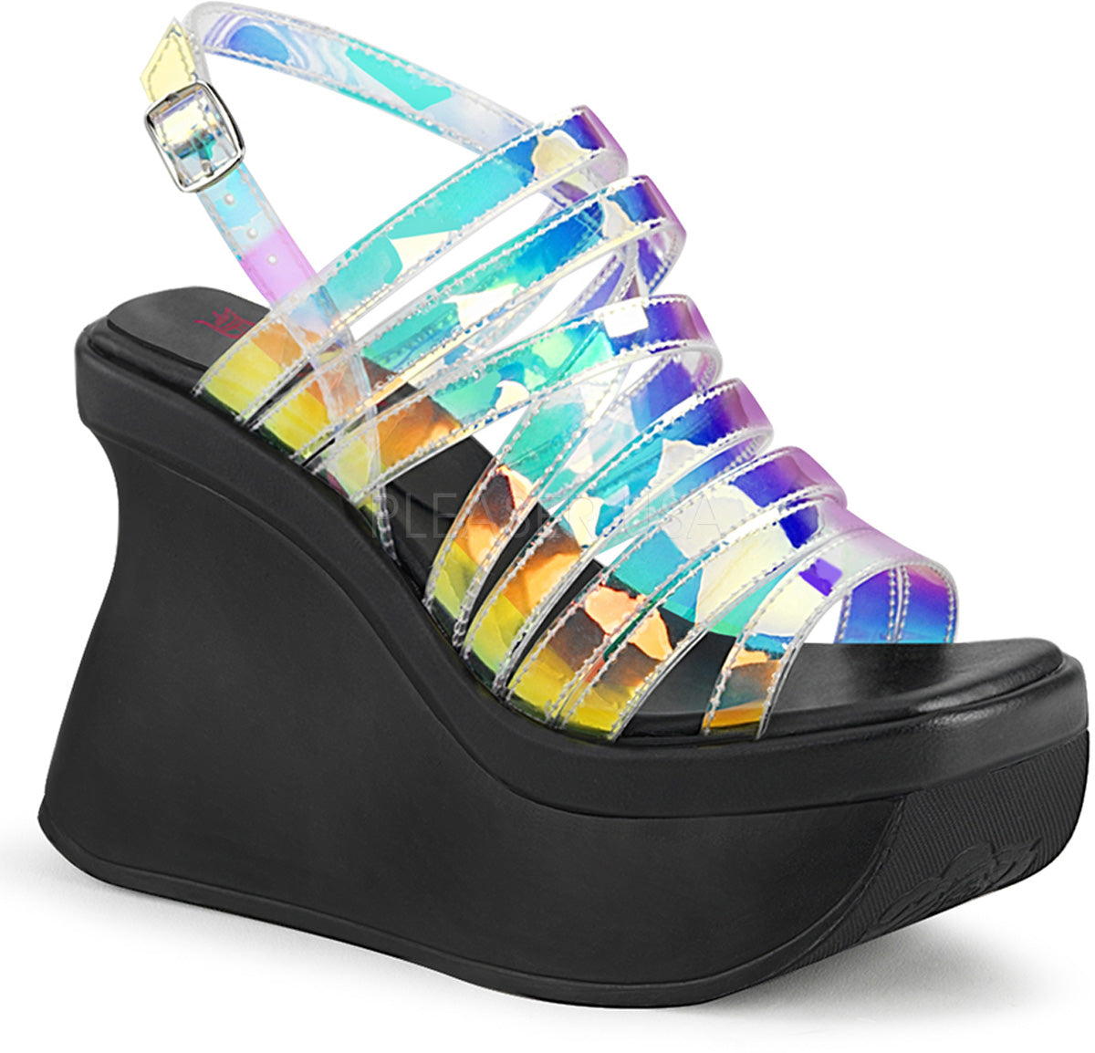 Full Description: 4 1/2" Wedge Platform Strappy Slingback Sandal