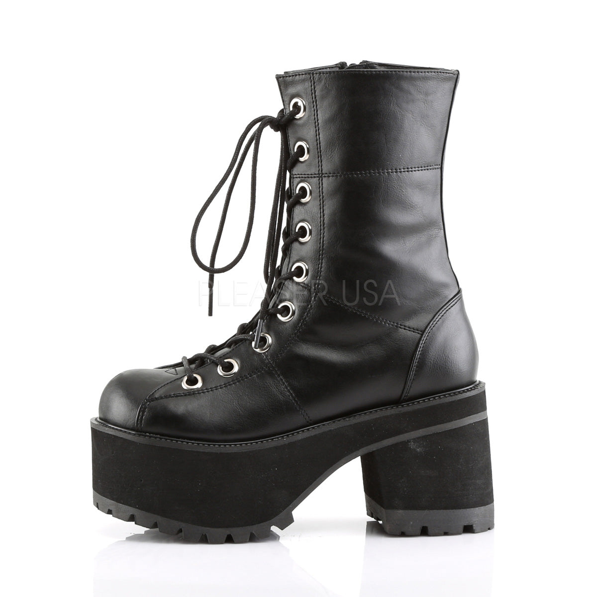 Full Description: 3 3/4" Block Heel Goth Punk Gogo Calf BT w/ Zipper