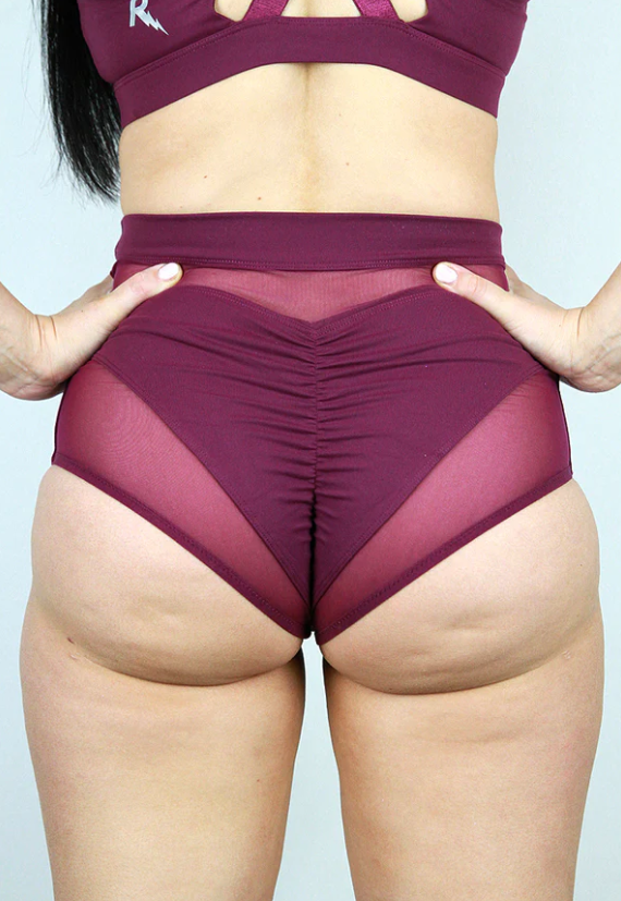 Its mid waisted and has a scrunchie bum showing lots of booty. Pair it with the stunning matching bra. Perfect for all gym, dance, photoshoots and performances.