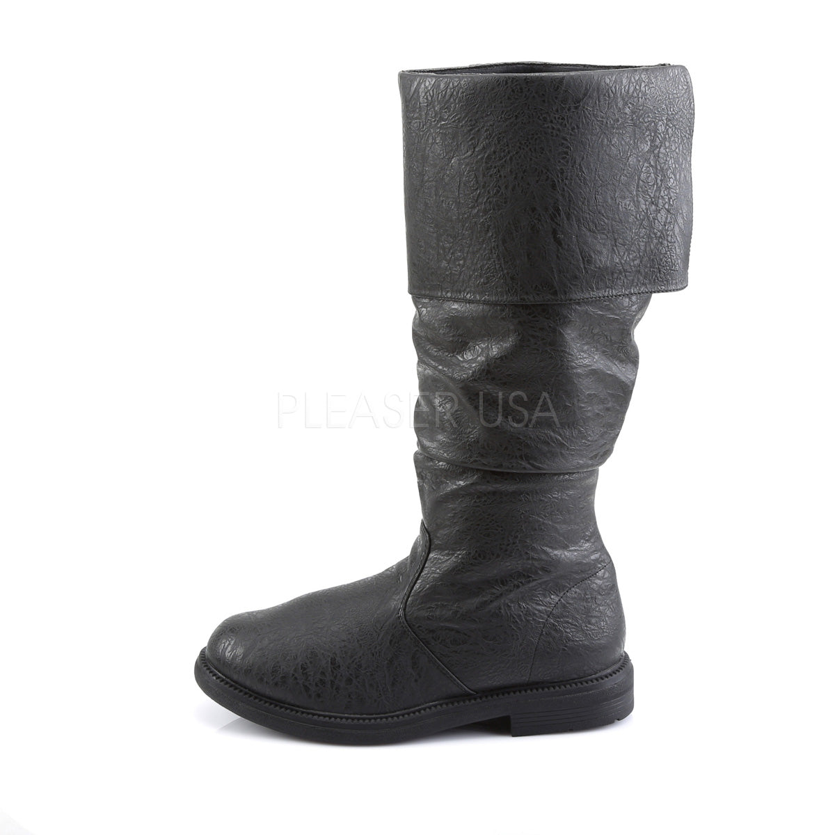 Full Description: 1" Flat Heel, Cuffed Knee High Renaissance Boot, Side Zip