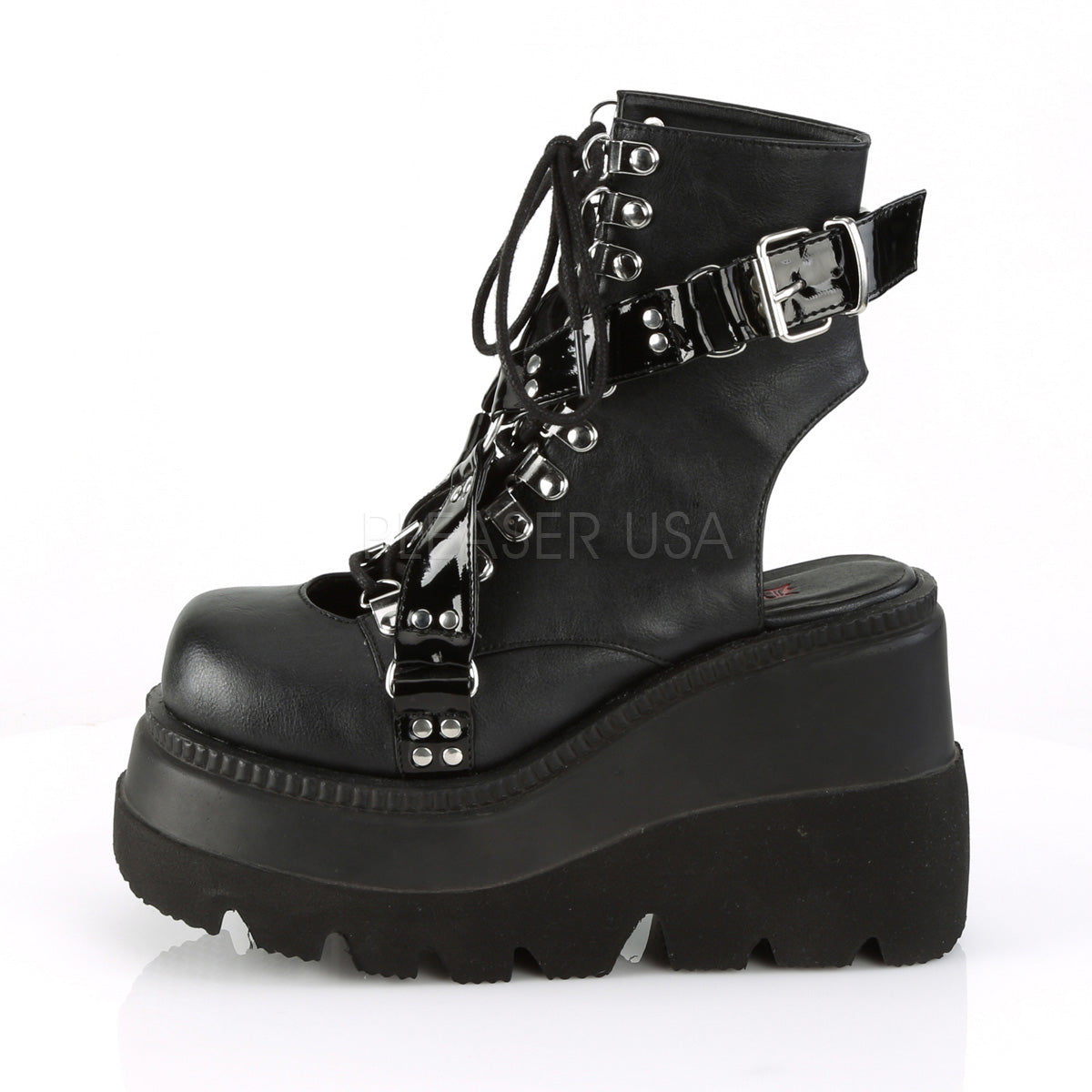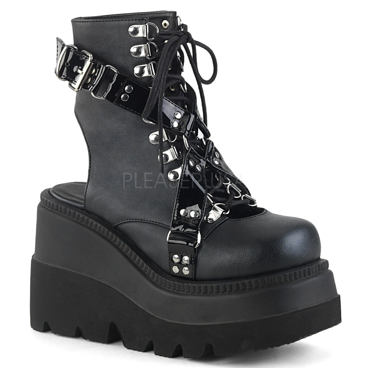 Full Description: 4 1/2" Wedge Platform Open Back Lace-Up Ankle Boot